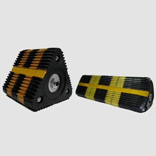 Nandan’s offers Rubber Wheel chock with nylon fiber prevents vehicles from rolling during maintenance, loading & unloading of vehicle to avoid further damage.